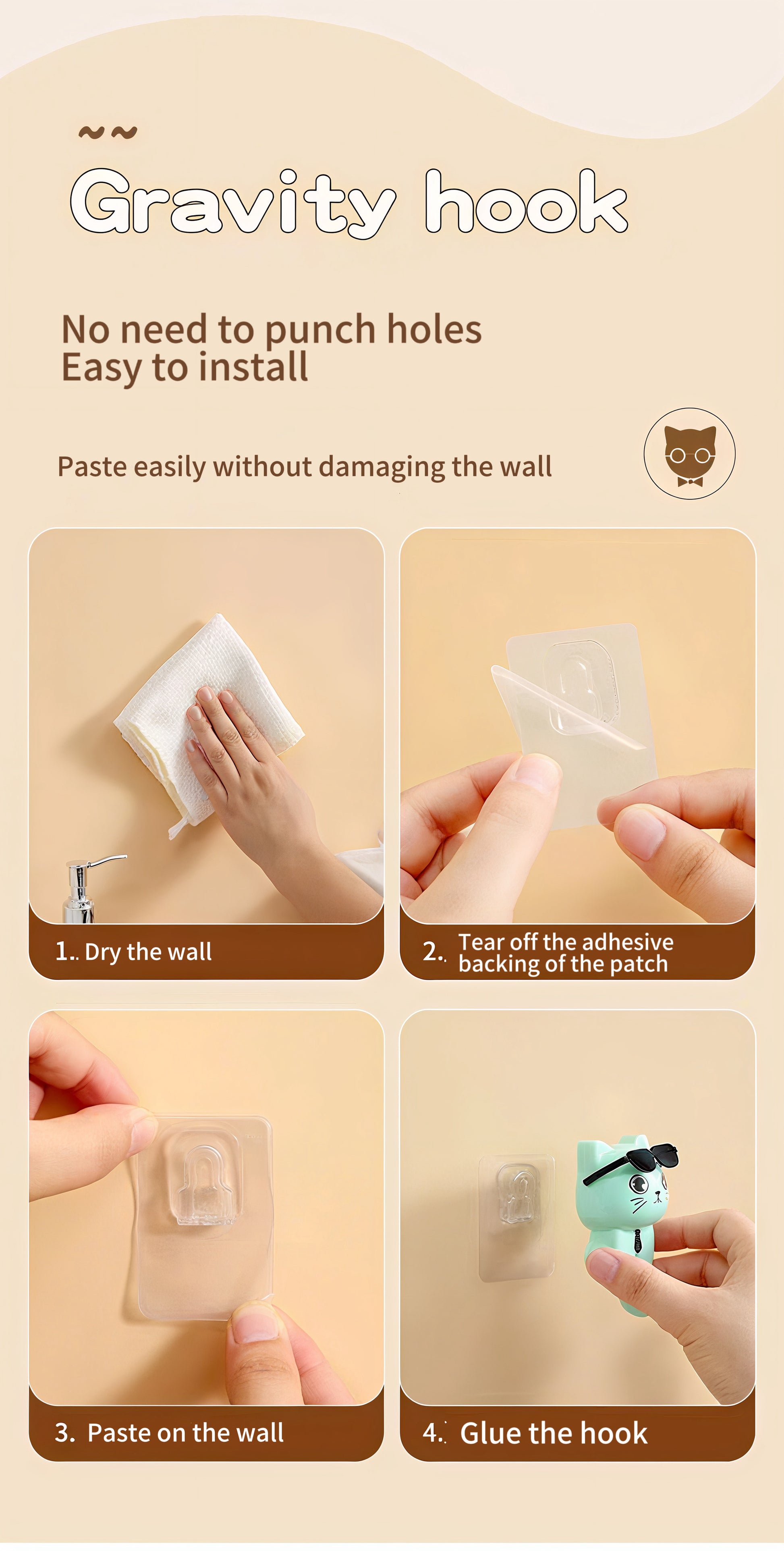 Product details: Punch-free strong adhesive gravity hook