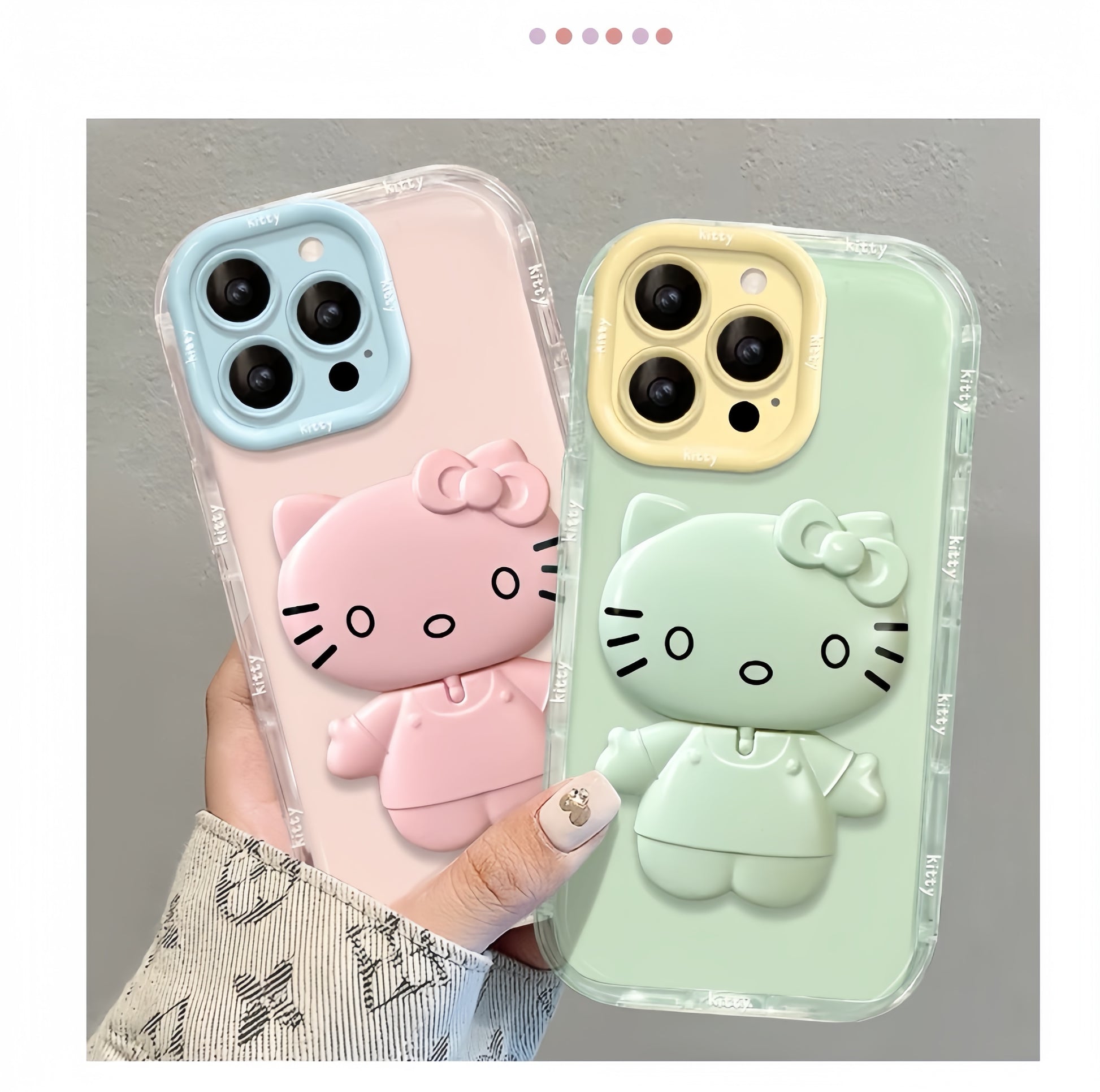 Rotating Kitty phone case with mirror and stand