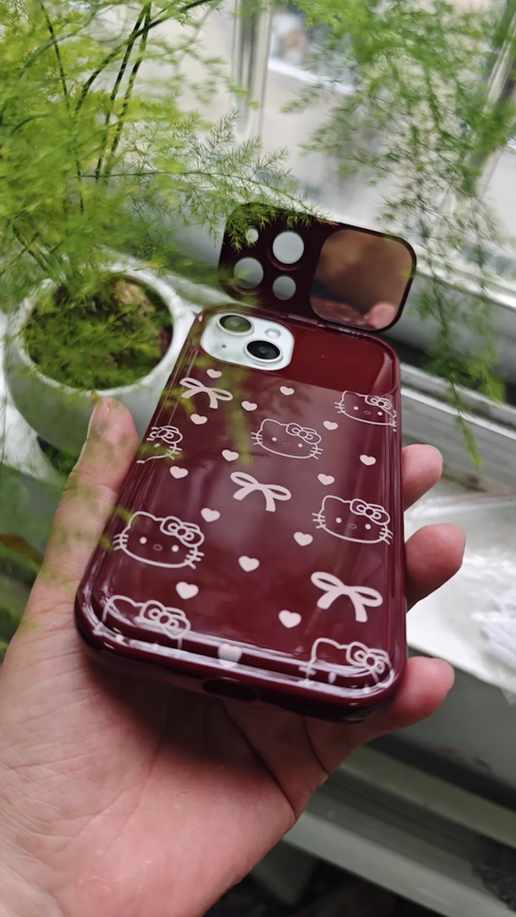 Thompson I can use the small mirror by flipping open the cover, which is very convenient. Kitty is also my favorite, I love it so much, the phone case material is very good.