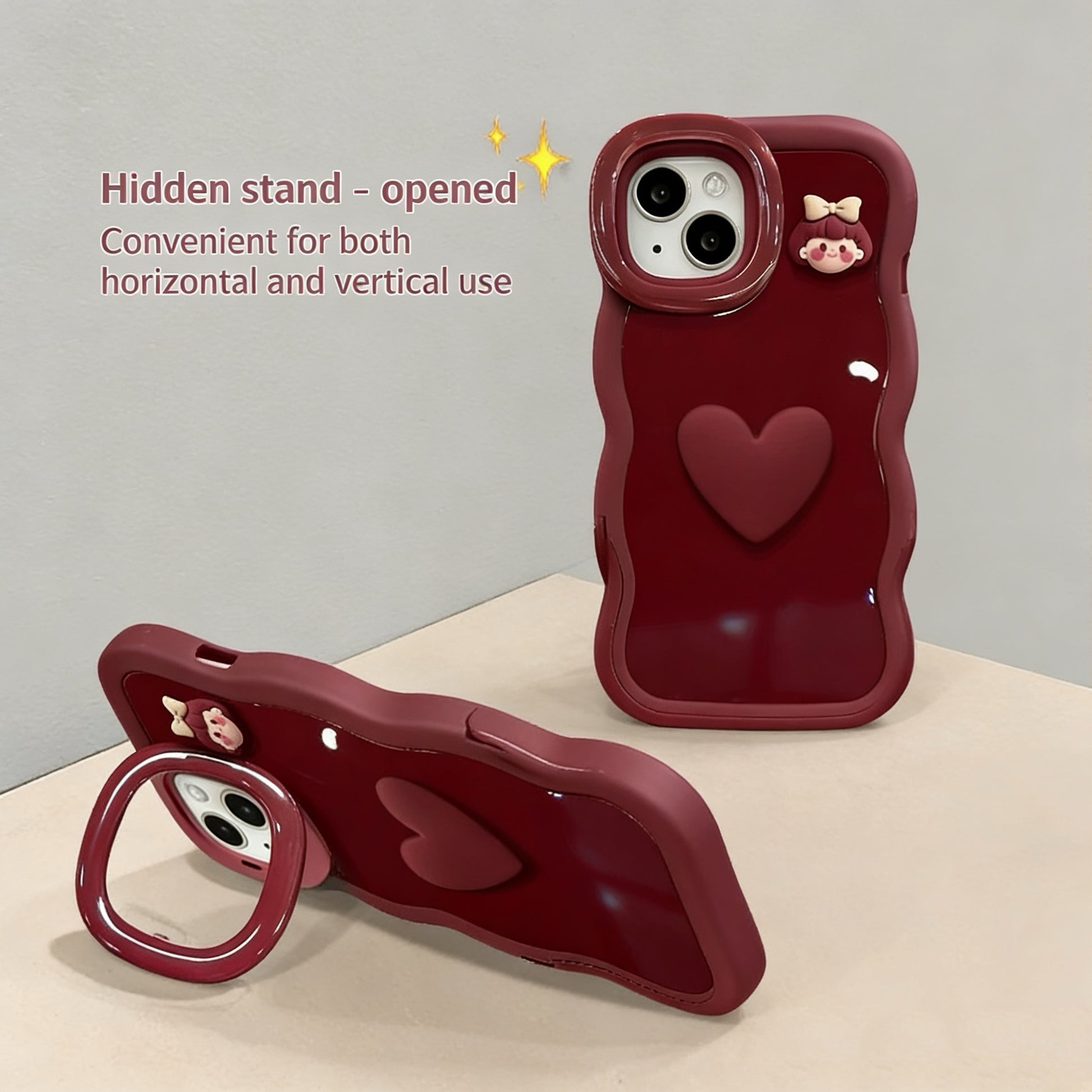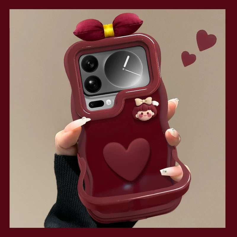Bow-shaped Heart Girl Invisible Double Stand Phone Case