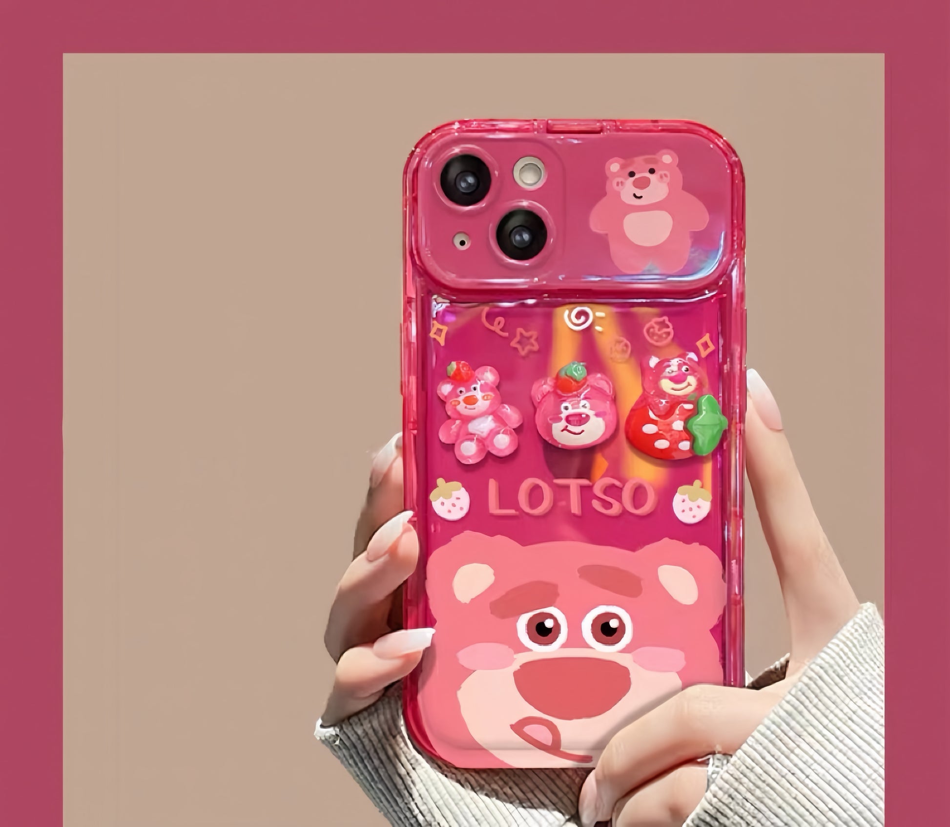 Strawberry Bear Flip Phone Case with Mirror and Stand